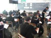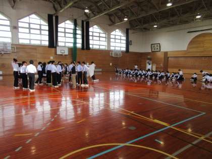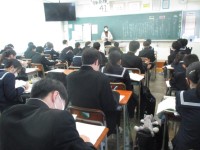 前半に3年生の合唱の様子を見せてもらい、後半は教室で練習に励みました。