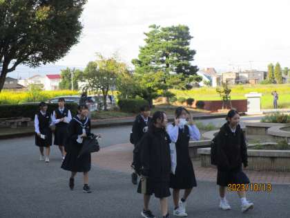 10月13日(金) 登校風景 公開日 2023/10/13 更新日 2023/10/13 news 今朝はさわやかな晴れ間があり、秋らしい気候でした。玄関では、「おはよう!」と元気な挨拶が交わされています。