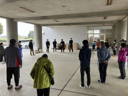 あいにくの雨ですが、令和5年度第2回集団回収を実施しています。PTA会長、厚生委員長の挨拶で学校からスタートです。