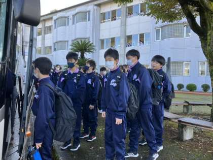 出発式をしてバスに乗車し、いよいよ出発です。みんな元気いっぱいです!