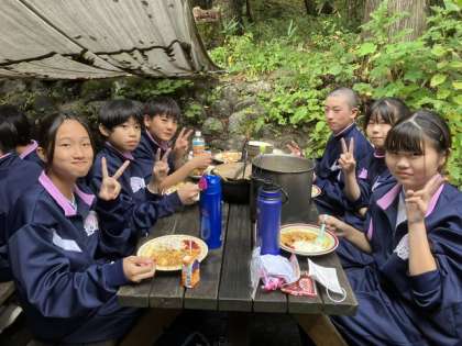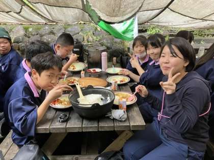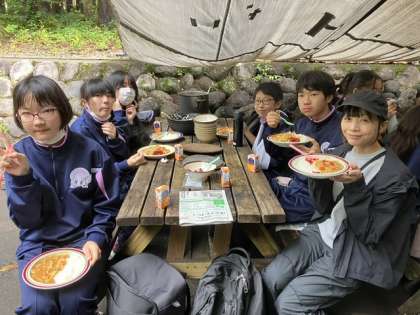 ついにカレーが完成しました!にこにこでカレーを頬張ります!
