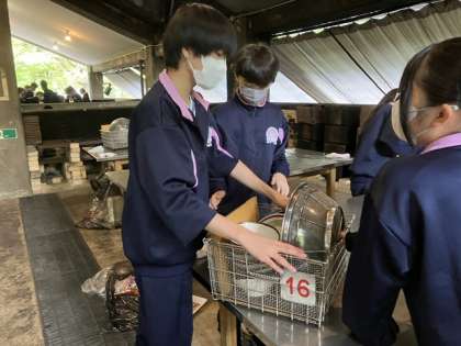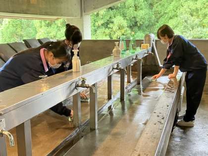 食事後の片付けも協力してテキパキ動いています!来た時より美しく!