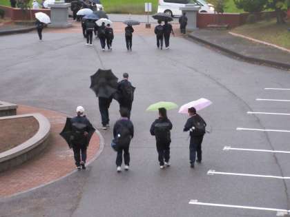 1年生は、校外学習の活動中には全く雨は降らず、学校に到着するとパラパラと雨が降り始めました。