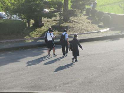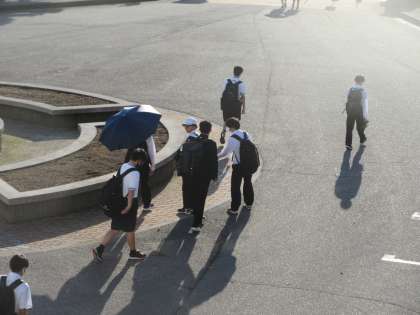 強い日射しの中、下校していきました。