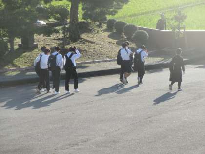 放課後合唱練習が終わった後、3年生や部活動のない1・2年生の生徒の下校風景です。