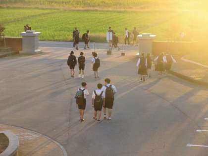 夕日が煌煌と燃え上がる中、生徒たちは元気に下校していきました。