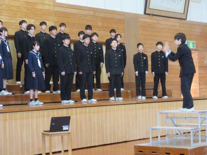 3年生も合唱コンクールリハーサルを行いました。3年生は1題目だけを歌い、あとは本番までのお楽しみ・・・です。3年生になると、より表現力もアップしています。
