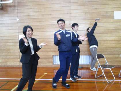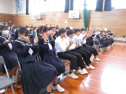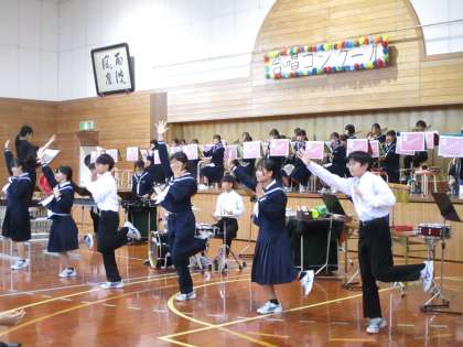 ソロパートあり、踊りあり、笑いありの楽しいステージでした。在校生もペンライトを手に持ってノリノリで声援を送りました。吹奏楽部も、観客も一体となって楽しみました。