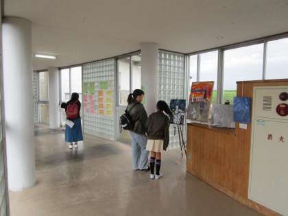 バナナ廊下には、英語部、美術部の作品を展示しました。在校生はもちろんのこと、来校された皆さまにもごらんいただきました。