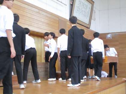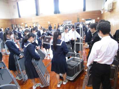 吹奏楽部の発表会の後、鑑賞に来ていた生徒と吹奏楽部で会場の片付けを行いました。みなさんの協力で、片付けも大変スムーズに行うことができました。