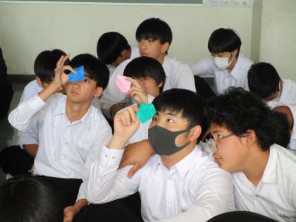 受精卵の大きさは、折り紙に空いた小さな針穴ほどの大きさと聞いて驚いた様子でした。