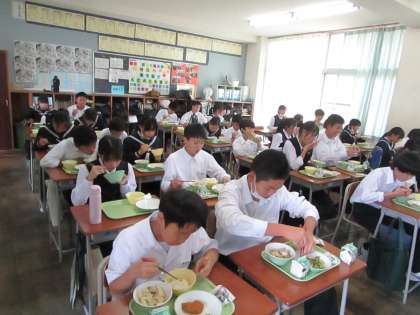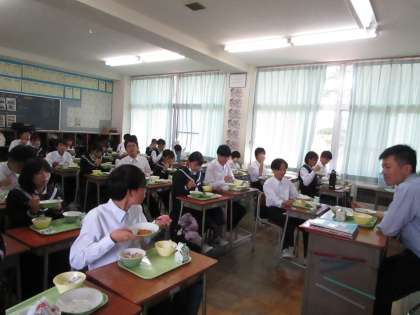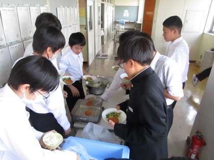10月27日(金) 1年 給食タイム 公開日 2023/10/27 更新日 2023/10/27 1学年 今日の献立の人気メニューはコロッケのようです。「いただきます。」が終わるとおかわりに多くの生徒が集まっていました。 写真上段:1年1組 写真中段:1年2組 写真下段:1年3組