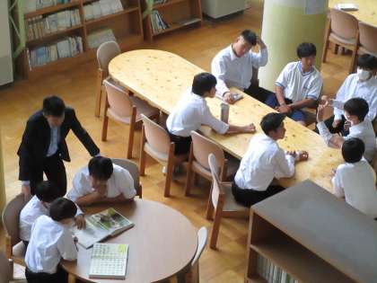 10月27日(金) 昼休みの図書室 公開日 2023/10/27 更新日 2023/10/27 news 昼休みの図書室は、本を読んだり歓談したり、多くの生徒が集まってきます。穏やかで楽しそうな図書室の様子です。