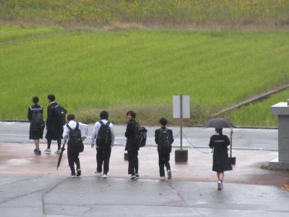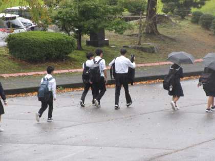 10月27日(金) 下校風景 公開日 2023/10/27 更新日 2023/10/27 news 本日の終学活終了後の下校風景です。 今日は5限後、清掃、終学活を行い、放課となりました。 5限途中から天候が急変し、清掃時から雷雨となりました。 大きな雷鳴と激しい稲光で、終学活終了後、しばらく教室で待機しました。 雨脚が弱まり、雷がおさまってから下校しました。 下校時には雨も止み始めて、傘なしで下校することもできました。