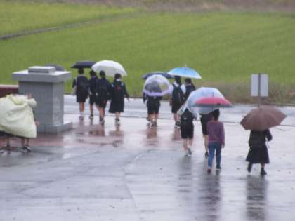 雨脚が強い中下校していきました。