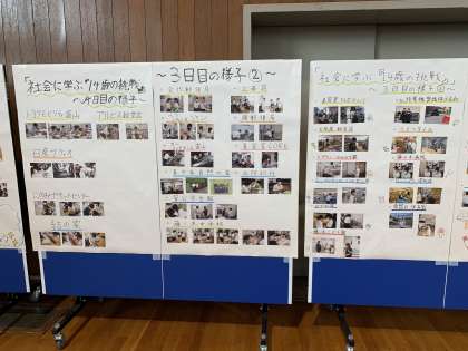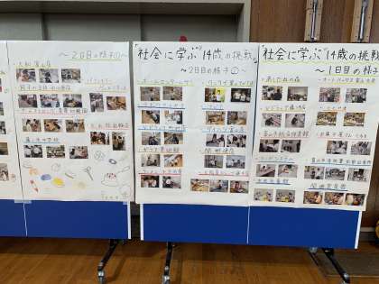 10月29日(日) 藤ノ木校下文化祭 公開日 2023/10/29 更新日 2023/10/29 news 本日、藤ノ木校下文化祭が行われました。 本校から「社会に学ぶ『14歳の挑戦』」のパネルや3年生の家庭科で作った「幼児が喜ぶおもちゃ」、1年美術で作った「うちわ」等を展示し、校下の皆さまに見ていただきました。