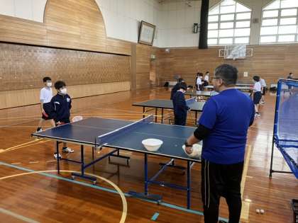 10月29日(日) 休日の部活動 卓球部 公開日 2023/10/29 更新日 2023/10/29 news 午後の体育館では、卓球部が活動しています。ペアになり、球出しをしてもらいレシーブ練習中です。
