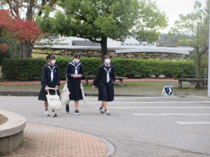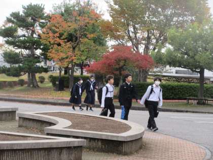 今日は、2年生が金沢校外学習へ出かけており、登校時間には1・3年生のみの登校で、やや寂しい感じがしました。
