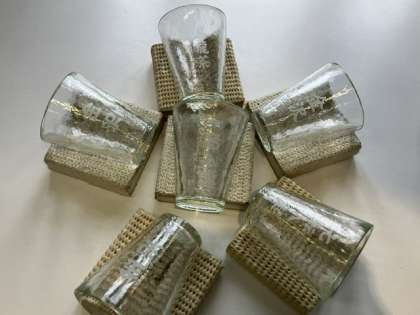 写真は砂ガラス彫り体験です。好きな図柄を選び、シールをカットして砂で、ガラスを削ります。