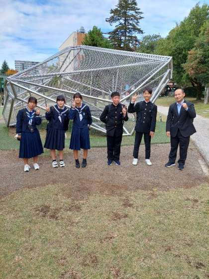 金沢21世紀美術館の様子です。班員揃ってハイ、チーズ!