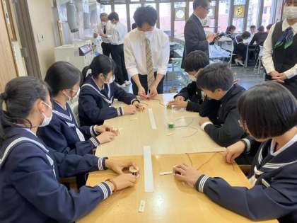 写真は小さな締め太鼓作り体験です。紐の縛り方にコツが必要です。