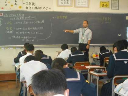 上の写真は2年1組の国語の授業風景です。「平家物語」の暗唱テストでした。