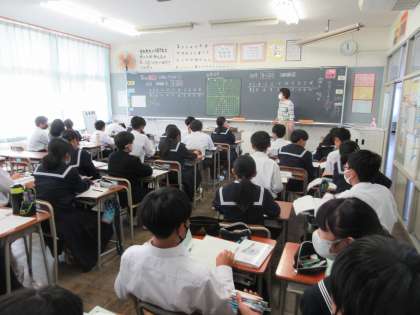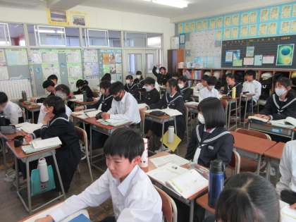 本日の4限目の授業の様子です。 教科は数学で比例のグラフの書き方について学習しました。