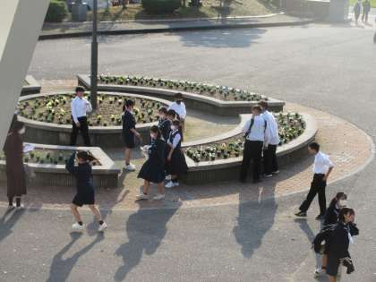 委員会の生徒たちが、一生懸命植え付けをしてくれました。