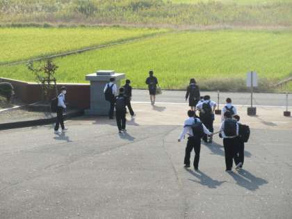 また、下校していく生徒たちも少し暑そうでした。