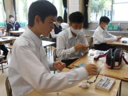 下の写真は、2年2組の美術の授業の様子です。