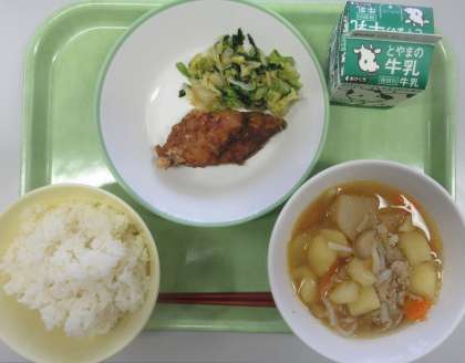 11月6日(月) 今日の給食 公開日 2023/11/06 更新日 2023/11/06 news 今日の給食のメニューは以下のとおりです。 ○ごはん ○牛乳 ○魚の竜田揚げ ○おひたし ○豚肉の南蛮煮 「豚肉の南蛮煮」は、豚肉がたっぷり入っていてお腹が満たされました!