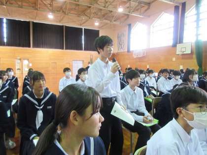講話の後、多くの生徒が質問したり感想やお礼の言葉をお伝えしました。