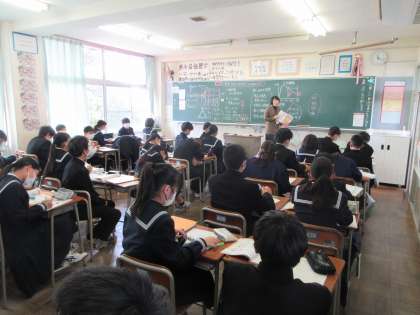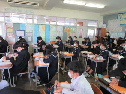本日の3限目の授業の様子です。 教科は家庭科で期末テストに向けて復習をしました。