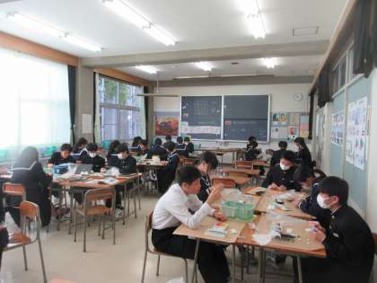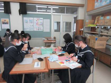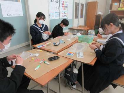 2年1組は、美術で粘土に絵の具を混ぜて、和菓子のサンプル作りを行っています。