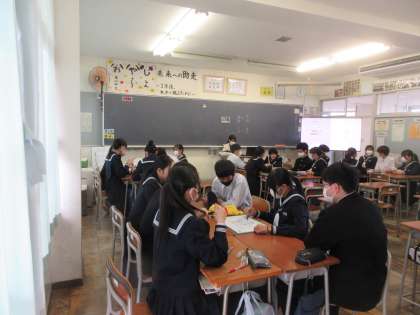 2年生の今日の授業の様子です。 写真上段 2−1 社会 写真下段 2−2 国語