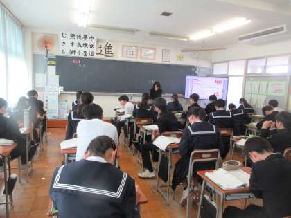3年生の今日の授業の様子です。 写真上段 3−1 英語 写真中段 3−3 社会
