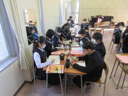 11月16日(木) 1年1組 授業風景 公開日 2023/11/16 更新日 2023/11/16 1学年 本日の1限目の授業の様子です。 教科は音楽で、期末考査に向けて「音楽記号」についての学習をしました。
