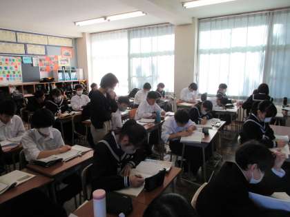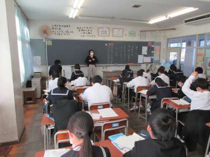 本日の1限目の授業の様子です。 教科は国語で「竹取物語」の学習をしました。