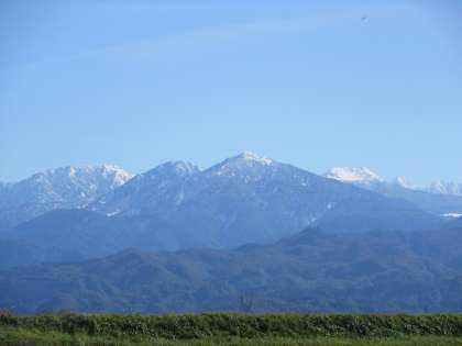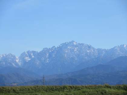 今日は雲一つない空の下、立山連峰の山々がスッキリと全景見えました。