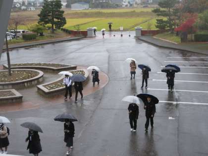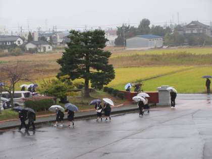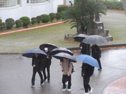 昨日の快晴の青空から一転、今日は雨空の中、登校してきました。