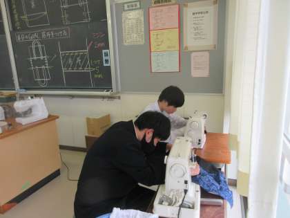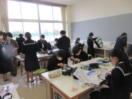 ミシンや手縫いで布をつなぎ、世界で一つのマイバッグを製作しています。