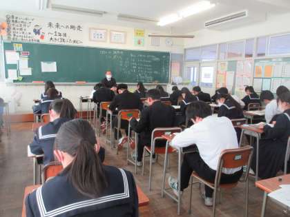 画像は上から3組、4組の2限目の技術・家庭かの期末考査の様子です。