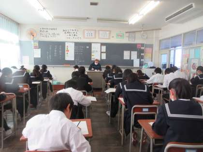 画像上から3組、4組の保健体育のテストの様子です。