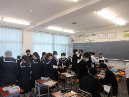 2年生の今日の授業の様子です。 写真上段 2−1 数学 写真下段 2−2 英語