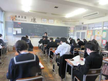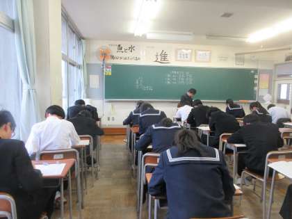 画像は上から4組、5組の1限目の国語の期末考査の様子です。