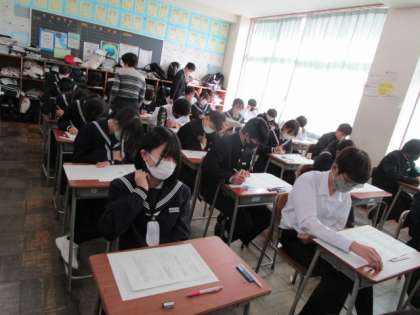 期末考査も最終日、最終科目となりました。2限数学テストの様子です。