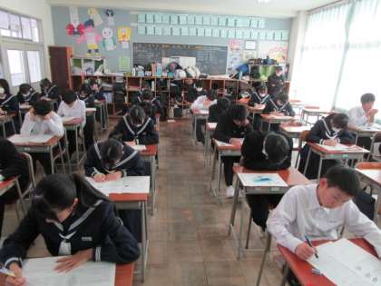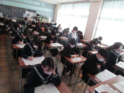 期末考査も最終日、最終科目となりました。2限理科テストの様子です。