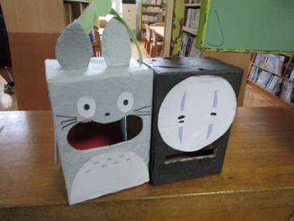 募金回収BOXも、とっても可愛らしい手作りです。募金をすると、赤い羽根のシールがもらえます。