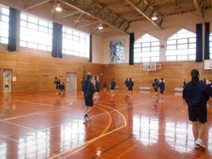 2年2組は体育で、ソフトボールでの投球練習をしていました。
