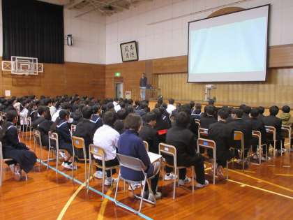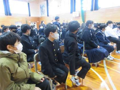 11月30日(木) 1学年 「歯の保健指導講話」 公開日 2023/11/30 更新日 2023/11/30 1学年 本日の5限目の保健指導講話の様子です。 歯ブラシの正しい持ち方や使い方、虫歯の原因となる習慣などについての講話を聞きました。講話後には、たくさんの生徒が歯医者に通うべき頻度や正しい歯磨きの仕方について質問をしました。